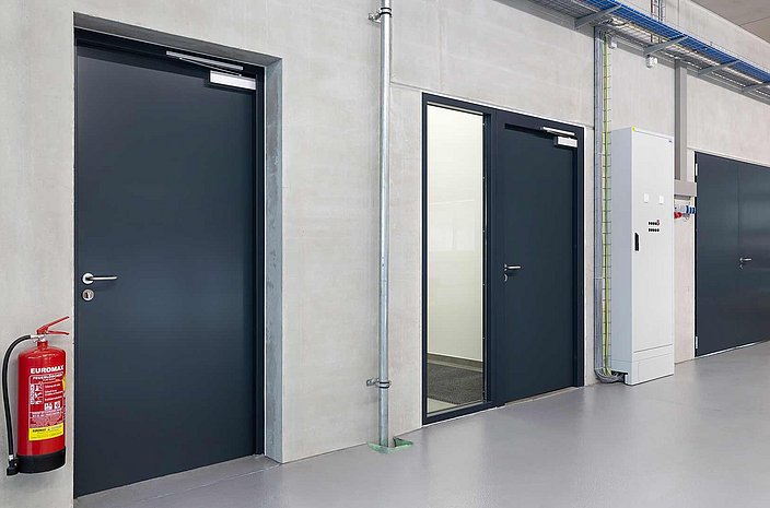 Brandschutz- und Rauchschutztüren aus Stahl werden maßgenau, ein- oder zweiflügelig, gefertigt. Türzargen, wie Block-, Eck- oder 2tlg. Umfassungszargen werden mit Dübelmontage im Mauerwerk verankert. In Standardfarbe oder Lackierung in Wunschfarbe integrieren sich diese Türen in jeden Bauteil von Gebäuden. Der Einsatzbereich ist mannigfaltig wie zum Beispiel in Heizräumen in Eigenheimen, Garagen sowie Bürogebäuden, Werkstätten oder öffentlichen Gebäuden. Je nach behördlichen Vorgaben sind verschiedene Klassifizierungen zu unterscheiden wie EI2 30C oder EI2 90C.