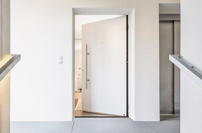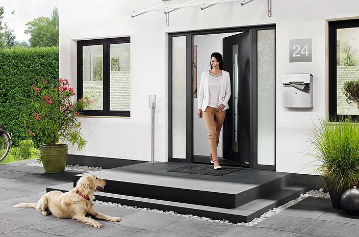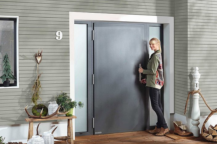 "Als sie die Wohnungstür aufschloss, zog sie der Duft von frischen Himbeeren zuerst in die Küche" - HÖRMANN Thermo46 ist die ideale Wohnungseingangstür in Mehrparteienhäuser. Durch thermische Trennung von Türzarge und thermisch getrenntem Türblatt braucht hier auf Wärmedämmung nicht verzichtet werden. Mehrfachverriegelung und RC2-Ausstattung sorgen auch bei Wohnungseingangstüren für hohe Sicherheit. Verschiedene Motive und Seitenteile bieten eine ansprechende optische Gestaltung.