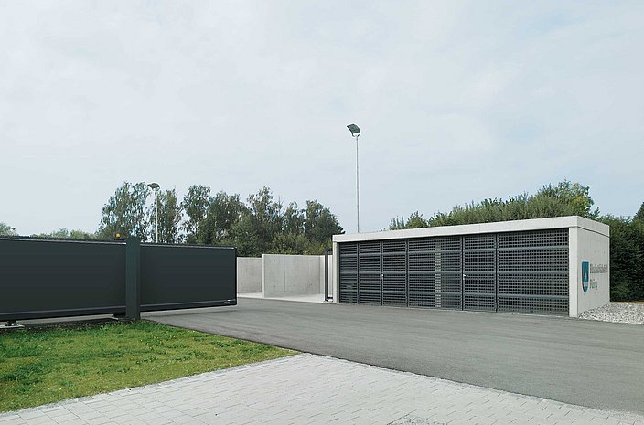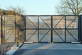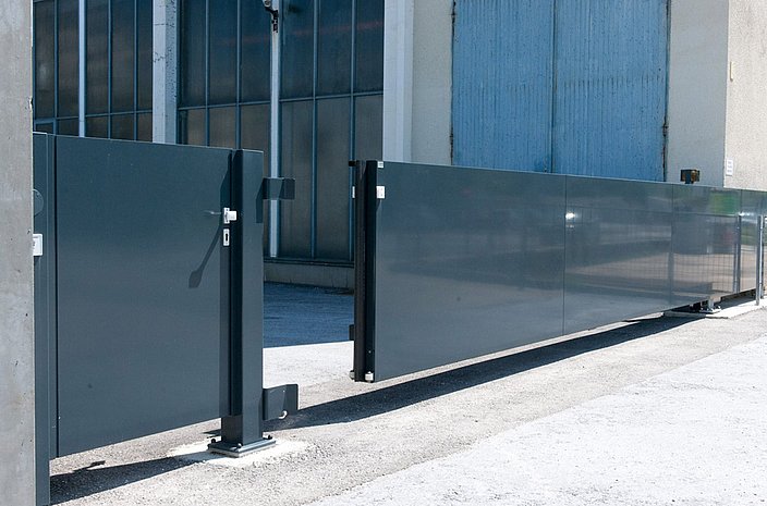 Werkseinfahrten sind wegen ihrer oft extremen Überbreiten eine große Herausforderung. Der patentierte Rollenmechanismus von LIBERO mit freitragendem Laufwerk bietet eine perfekte Lösung hierzu. Torbreiten bis zu 20m sind möglich. Gegenläufige Schiebetore oder Teleskopschiebetore verfügen darüber hinaus über platzsparende Möglichkeiten im Einschubbereich. Verschiedendste Füllungsgestaltung und bequeme Bedienung mit Elektroantrieb sind ein weiterer Bonus.