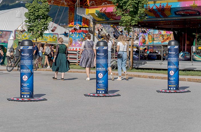 Egal ob beim Weihnachtsmarkt oder beim Stadtfest, sichert die mobile Fahrzeugsperre OktaBlock das Veranstaltungsgelände einfach, flexibel aber dennoch sicher ab.
