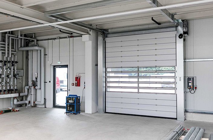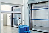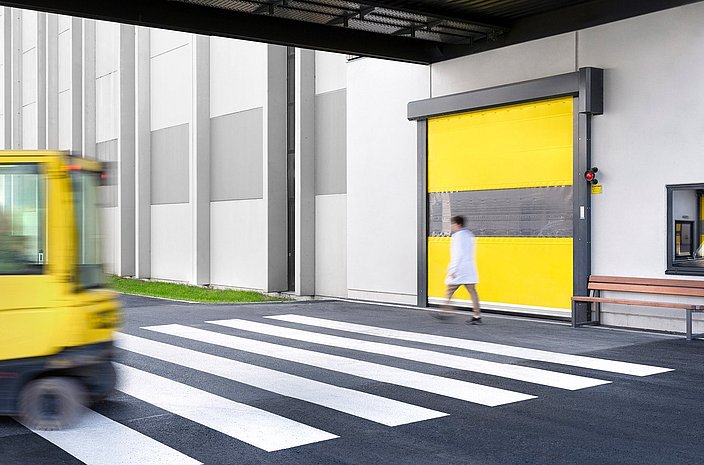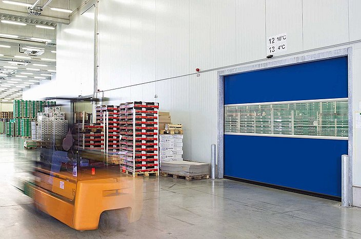In hochfrequentierten Bereichen, wo es besonders auf die schnelle Öffnungs- und Schließgeschwindigkeit von Toren ankommt, findet das Schnelllauftor seinen Einsatz, wie zB. in Fertigungs- und Lagerhallen, die ständig mit dem Stapler durchfahren werden. Knallig auffallender Textilbehang mit Sichtfenster erhöht die Sicherheit und isolierte PU Lamellen tragen zu einer positiven Energiebilanz bei. Auch schnelllaufende Roll- und Sektionaltore stehen zur Auswahl.